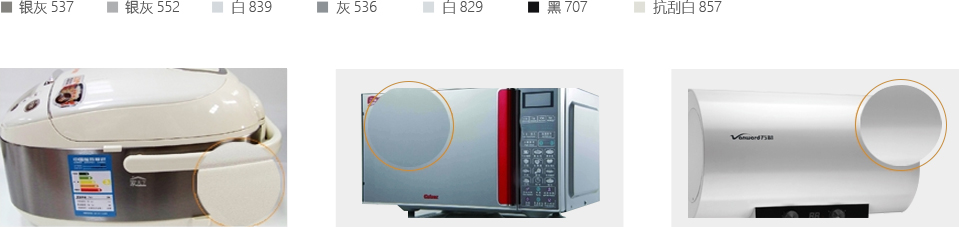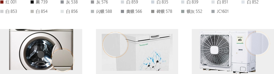 廣(guǎng)泛用於冰(bīng)箱、冷櫃、洗衣機、空調為代表的冰洗家(jiā)電行業,色卡如下: