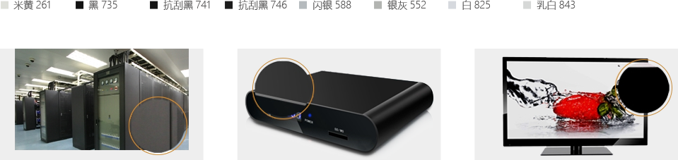 廣泛應用於以電視(shì)機、音像為代表的(de)音像行業,色卡如下: