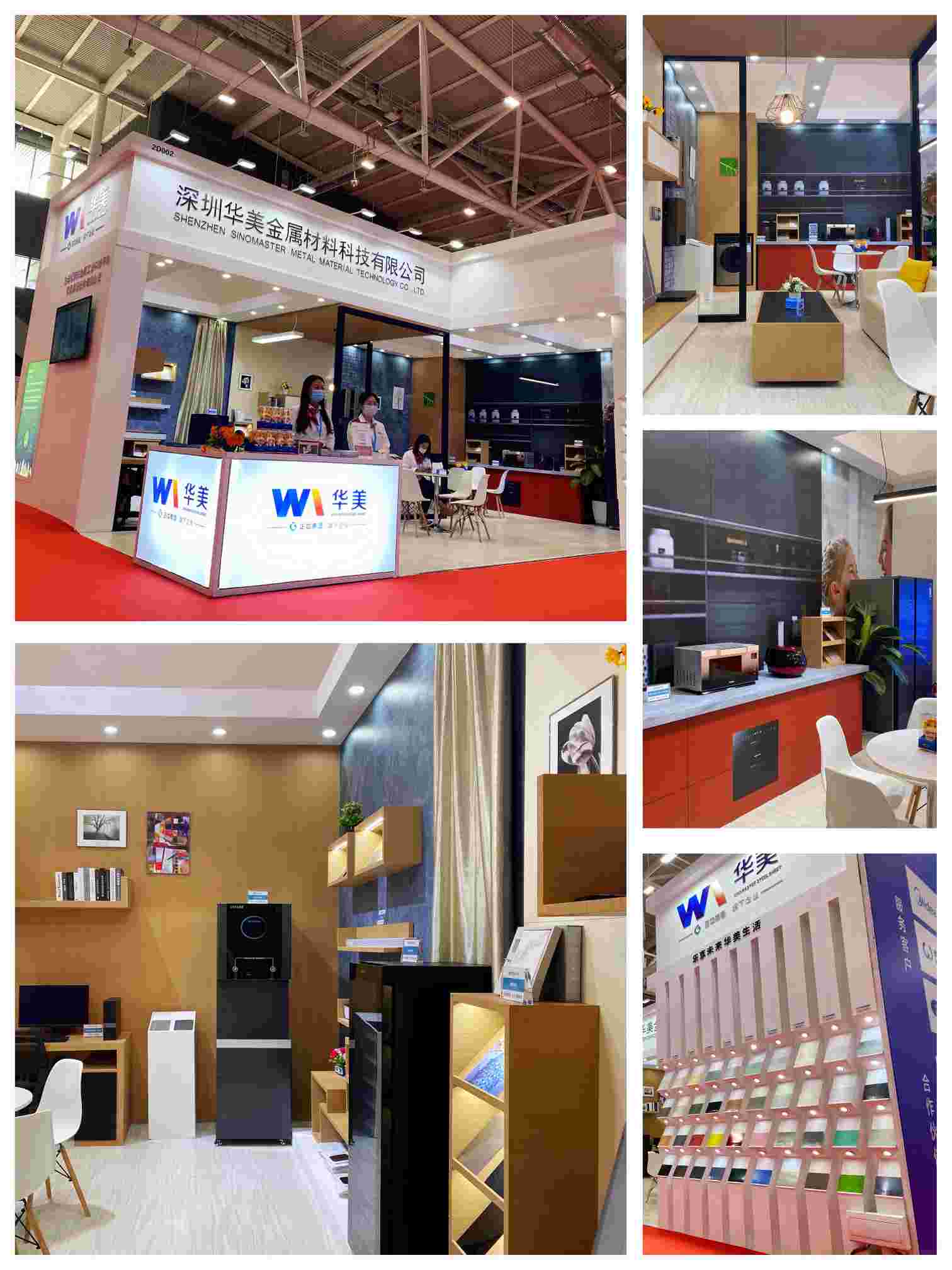在本(běn)次(cì)展會,華(huá)美科技展廳搭(dā)建采用2(客廳(tīng)、廚房2個空間)+N(顏色、性能、不同基板、特殊功(gōng)能(néng))的模式,帶來了“塗覆(fù)”拳頭產品與王牌技術,全方位展示了拉(lā)絲彩(cǎi)塗係列、抗病毒係列、網紋係列、錘紋係(xì)列、流行色係列、水性係列、覆膜(mó)新品(pǐn)係列產品。同時,也可以滿足客戶在不同行業(yè)上的定(dìng)製化需求。
