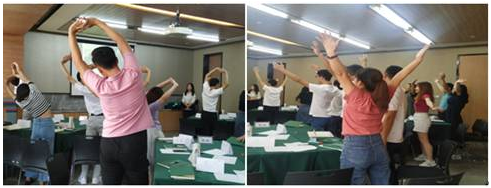 下午課程開始前,學員們跟隨視頻鍛煉(liàn)與放鬆,以便更好的學習。